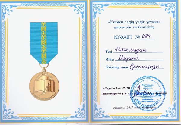 "Егемен елдің үздік ұстазы" төсбелгісімен марапатталды