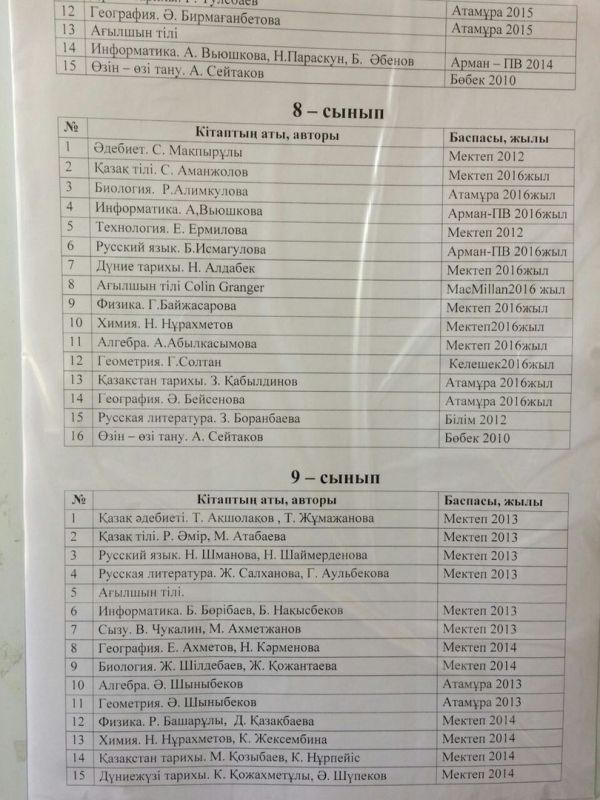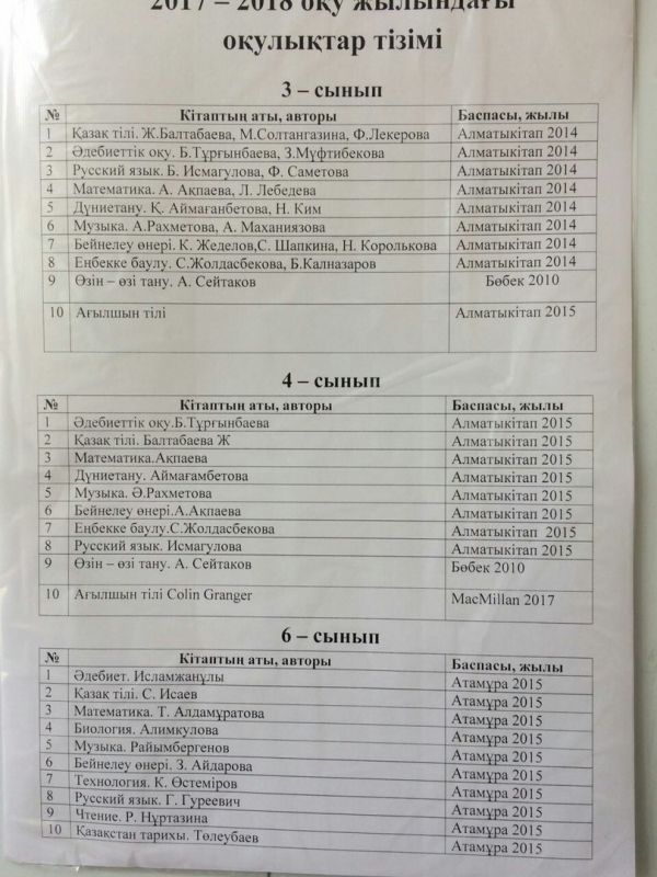 Мектеп оқушыларын 2017-2018 оқу жылында оқулықпен қамтамасыз ету туралы хабарлама жасалды