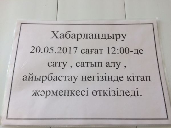 20.05.17 күні мектебімізде кітаптар жәрмеңкесі өткізілді. Оқушылар 2017-2018 оқу жылына жетіспейтін оқулықтарды сатып алды. Жетіспейтін оқулықтар тізімі түсіндіріліп айтылды.