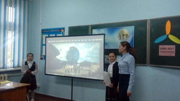 15.05.2017 күні 5 "Ә" сынып оқушыларының қатысуымен "Заманауи Қазақстанның жетістіктері ЕХРО-2017" атты тәрбие сағаты өтті. Мақсаты: 1851 жылдан бастау алып келе жатқан дүниежүзі…
