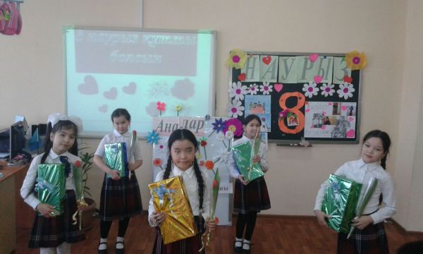 Осынау көктемнің арайлы мерекелерінің бірі 8 -наурыз арулар мерекесіне арнап 3 ә сыныбы "Ана-өмірдің гүлі" атты тәрбие сағатын өткізді