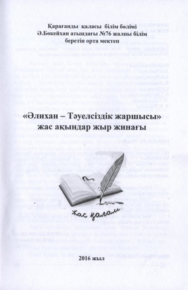 Қарағанды қаласының білім бөлімі мен №76 ЖББОМ ұйымдастыруымен өткен «Әлихан – Тәуелсіздік жаршысы» атты қалалық жас ақындар жыр жинағы жарық көрді. Жинаққа мектебіміздің 5 –…