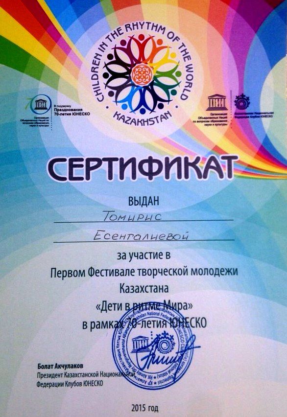 2015 жылдың 29 наурызы күні мектебіміздің әншісі Есенгалиева Томирис ЮНЕСКО 70-жылдығына арналып ұйымдастырылған «Дети в ритме Мира» атты байқауын…