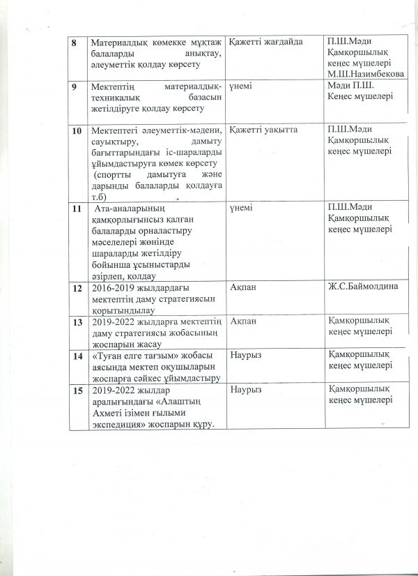 2018-2019 оқу жылындағы қамқоршылық кеңесінің жылдық жұмыс жоспары
