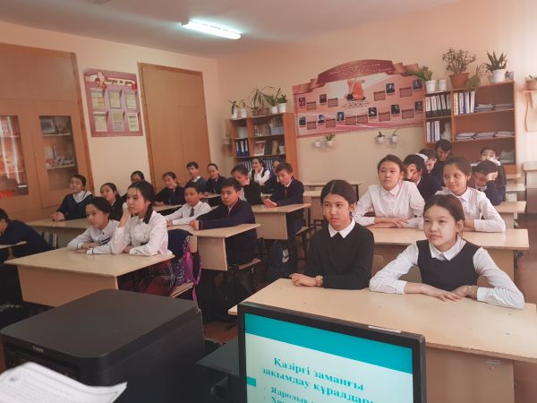 01.03.2018 ж. «Азаматтық қорғаныс» күніне арналған сынып сағаты 9 «Ә» сынып оқушыларымен өткізілді. Оқушылар төтенше жағдайлардан сақтану жолдарымен танысты.