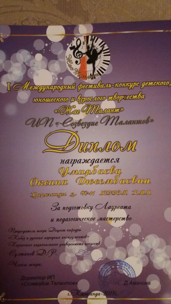 «Жас талант» І Халықаралық балалар мен жасөсіпірмдер арасындағы фестиваль – сайыста №41 жалпы білім беретін орта мектеп оқушыл…