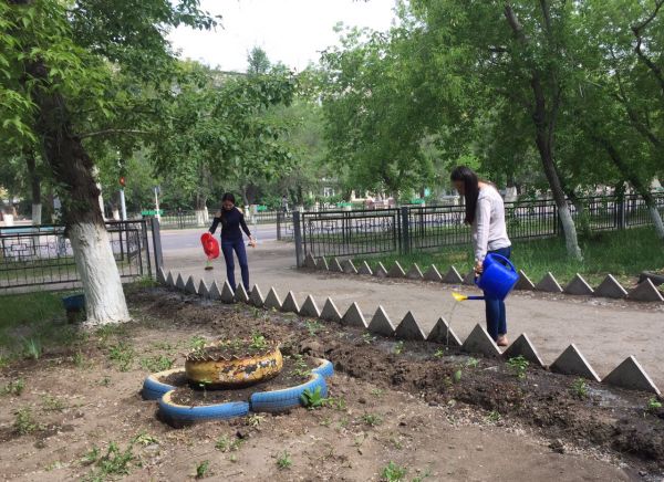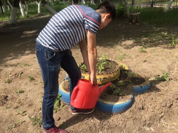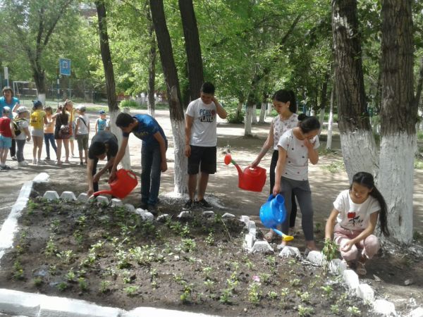 10 «Ә» сынып оқушылары жазғы «Жасыл ел» бағдарламасы бойынша гул суаруда.