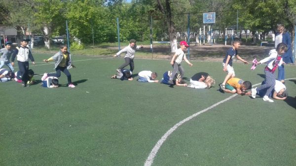 Лагерь балаларымен дене тәрбиесі пәні мұғалімі М.Қ. Тлешованың ұйымдастыруымен жарыс өткізілді. Әртүрлі ойын түрлері ұйымдастырылып өз мәресіне жүргізілді.