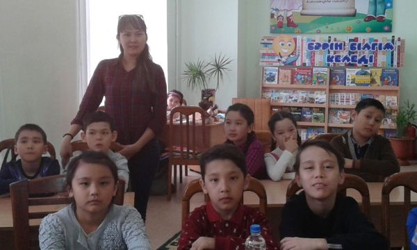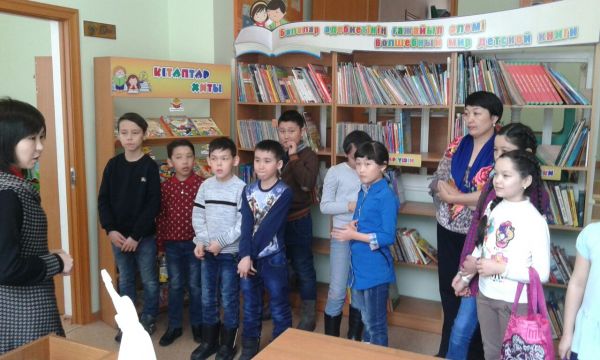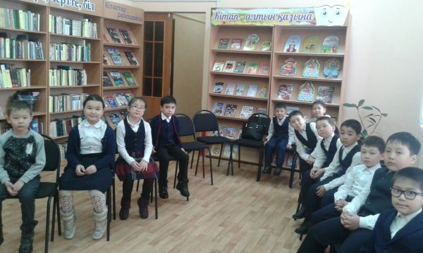 1 Ә сынып оқушылары сынып жетекшісі жетекшілігімен Мұхтар Әуезов атындағы кітапханада Кітаптар апталығында болып қайтты