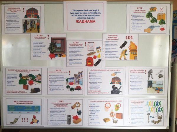 Қазақстан Республикасының Ішкі істер министрлігі әзірлеген терроризм актісінің қауіпі туындаған немесе терроризм актісі жасалған жағдайдағы әрекеттер туралы жаднама стендке орналастырылды