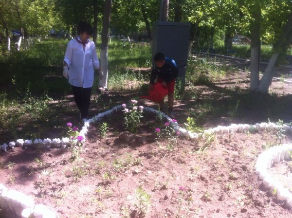 Мектеп ауласын көгалдандыру жұмыстары мамыр айында басталды, гүлзарларға гүлдер отырғызылды. Мектеп маңына отырғызылған гүлдерді оқушылар суарып, күтуде. Мектеп ауласында көгалдандыру жұмыстарын жүр…
