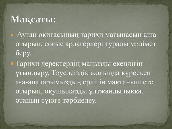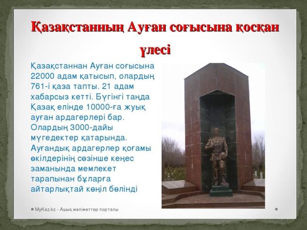 Ауған оқиғасының тарихи мағынасын аша отырып, соғыс ардагерлері туралы мәліме…