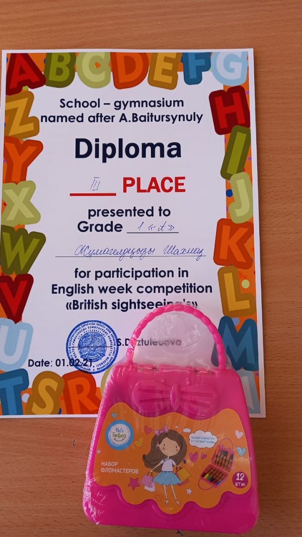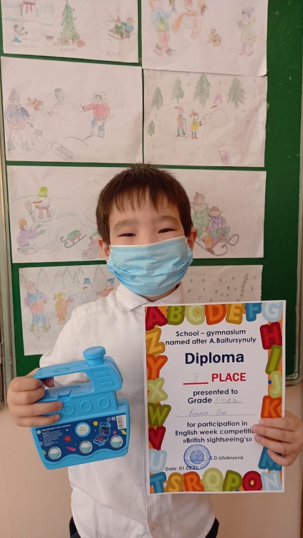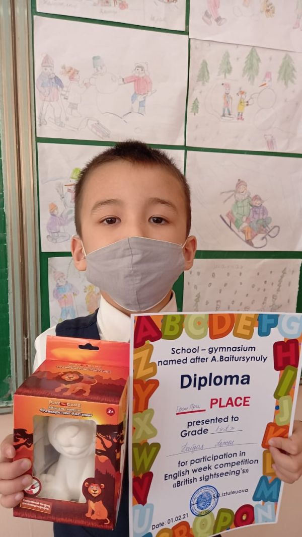 Ағылшын тілі апталығы аясында ұйымдастырылған "Ұлыбритания"тақырыбында макет жасаудан 1"А"сынып оқушылары жүлделі орындарға ие болды