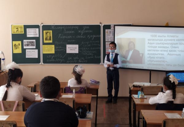 Мектебіміздің кітапханасында Тәуелсіздік мерекесіне арнап «Күн шуақты Қазақстан» атты кітапханалық сабақ өткізілді