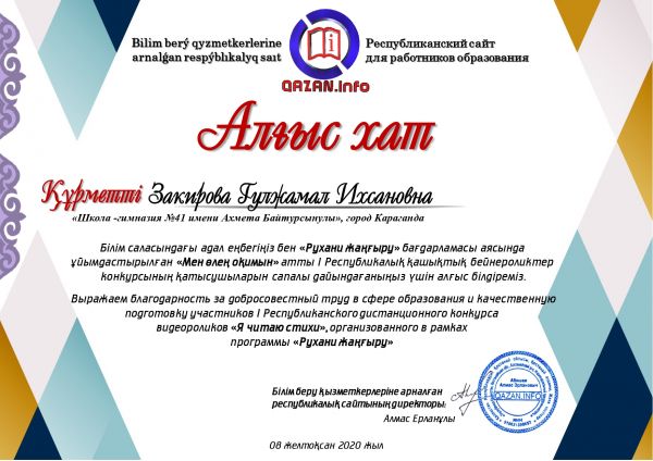 "Рухани Жаңғыру" бағдарламасы аясында ұйымдастырылған "Мен өлеңді оқимын" атты І Республикалық қашықтық бейнероликтер конкурсы