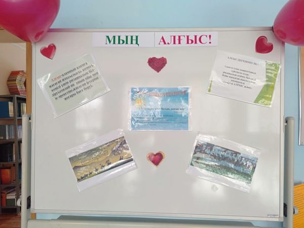 Мектебімізде  алғыс айту күніне орай «Алғысым шексіз атты» бұрыш ұйымдастырылды. Оқушылар өздерінің ықыластарын қағаз бетіне жазу арқылы білдірді.