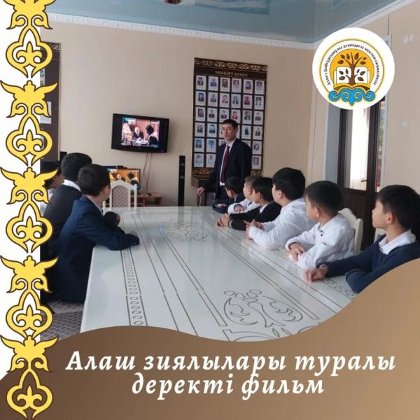 "Алаш орда" автономиясының құрылуына 105жыл толуына орай мектеп мұражайында 7"А" сынып оқушыларына танымдық сабақ өткізілді. Сынып жетекшісі: А.Ж. Сапарбекова