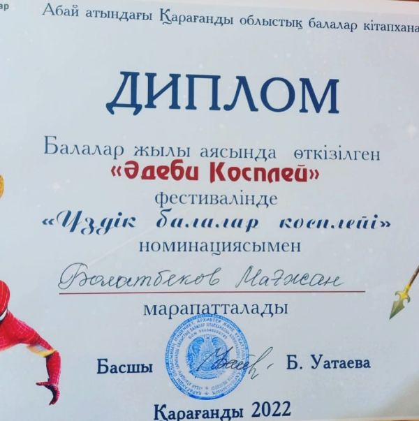 09.12.2022 ж. күні “Абай атындағы Қарағанды облыстық балалар кітапханасында” “Косплей фестивалі” өтті.