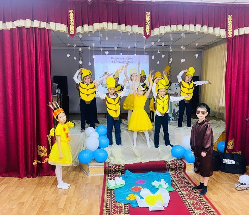 “Баспалдағы білімнің-бастауыштан басталар” бастауыш сыныптардың әдістемелік апталығы аясында 3-4 сыныптар “Ертегілер елінде “тақырыбында “Қаңбақ пен бидай”, “Шегіртке мен құмырсқа”, “Өгіз бен бақа”қойылымдарын қойды.