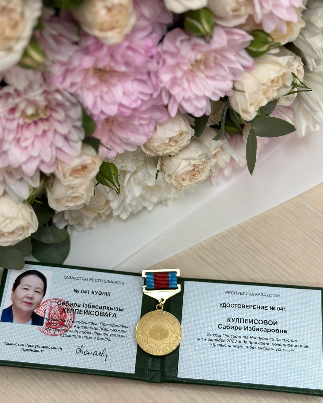“Ахмет Байтұрсынұлы атындағы мектеп-гимназиясы”КММ Қазақ тілі мен әдебиеті пәнінің мұғалімі, педагог-зерттеуші, ұлағатты ұстазымыз Кульпеисова Сабира Избасаровна үлкен құрметпен Қазақстанның Еңбек сіңірген Ұстазы деген төсбелгі мен марапатқа ие болды.