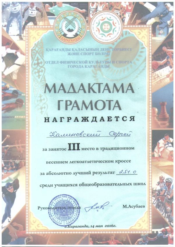 Ученик 7"Ә" класса занял III место в Республиканской дистанционной олимпиаде по математике. Учитель Салимбаева Г.А. Поздравляем!