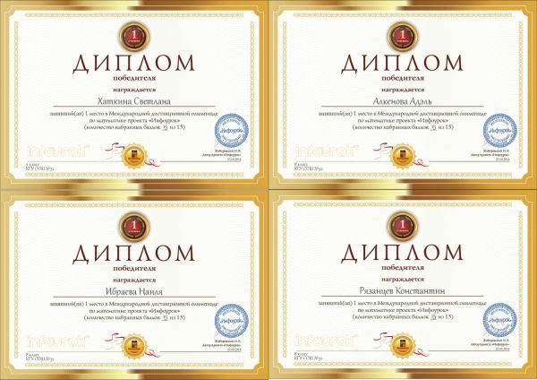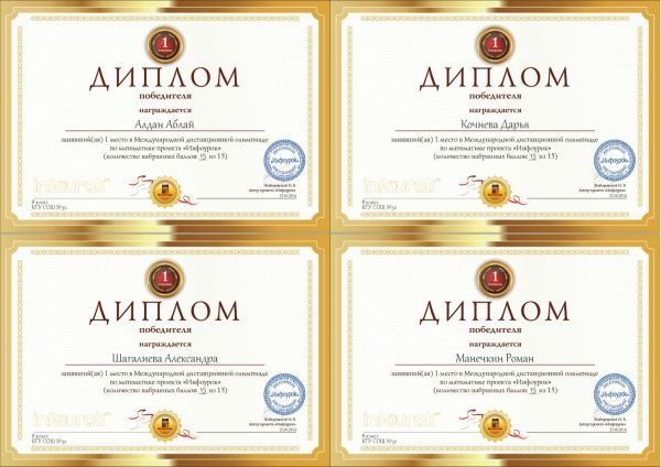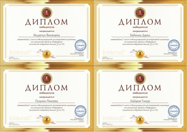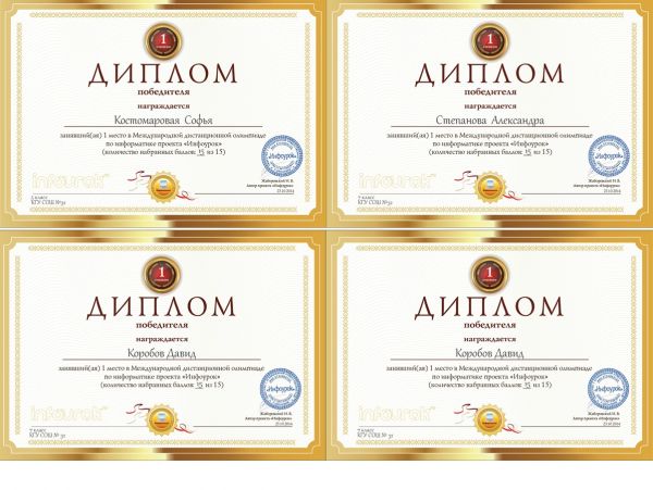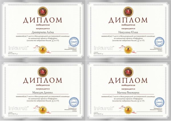 Учащиеся СОШ №32 приняли участие в Международной дистанционной олимпиаде по информатике проекта «Инфоурок» и показали следующий результат: I место 1.      Ко…