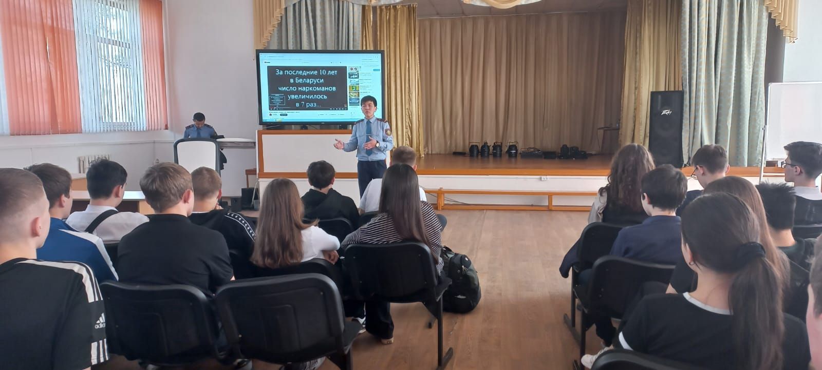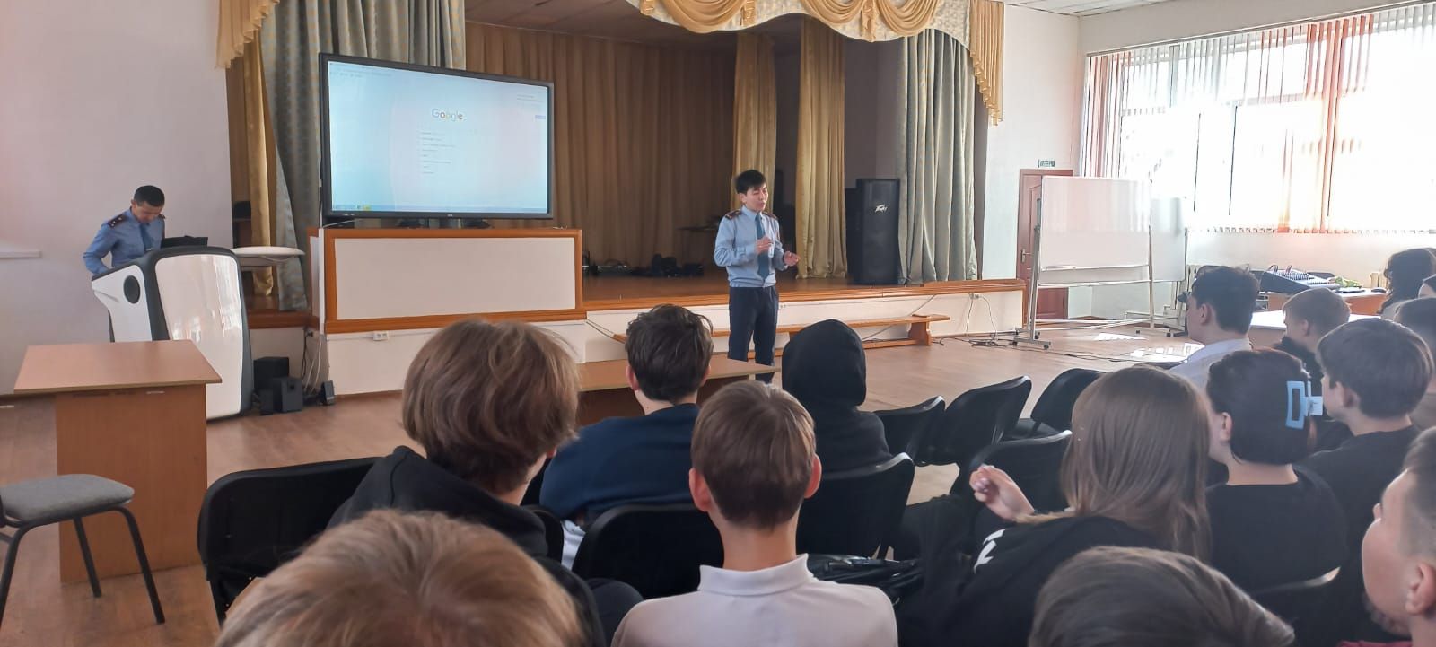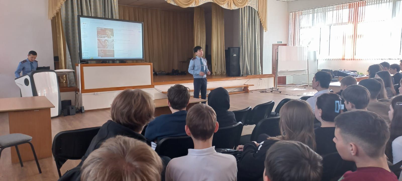 12.04.2024 года проведена беседа с учащимися 8  классов на тему: "Наркотики". УИП ГЮП ОМПС Кировского ОП лейтенант полиции Толеухан Ш.С. и  лейтенант полиции Кизкин А.К.