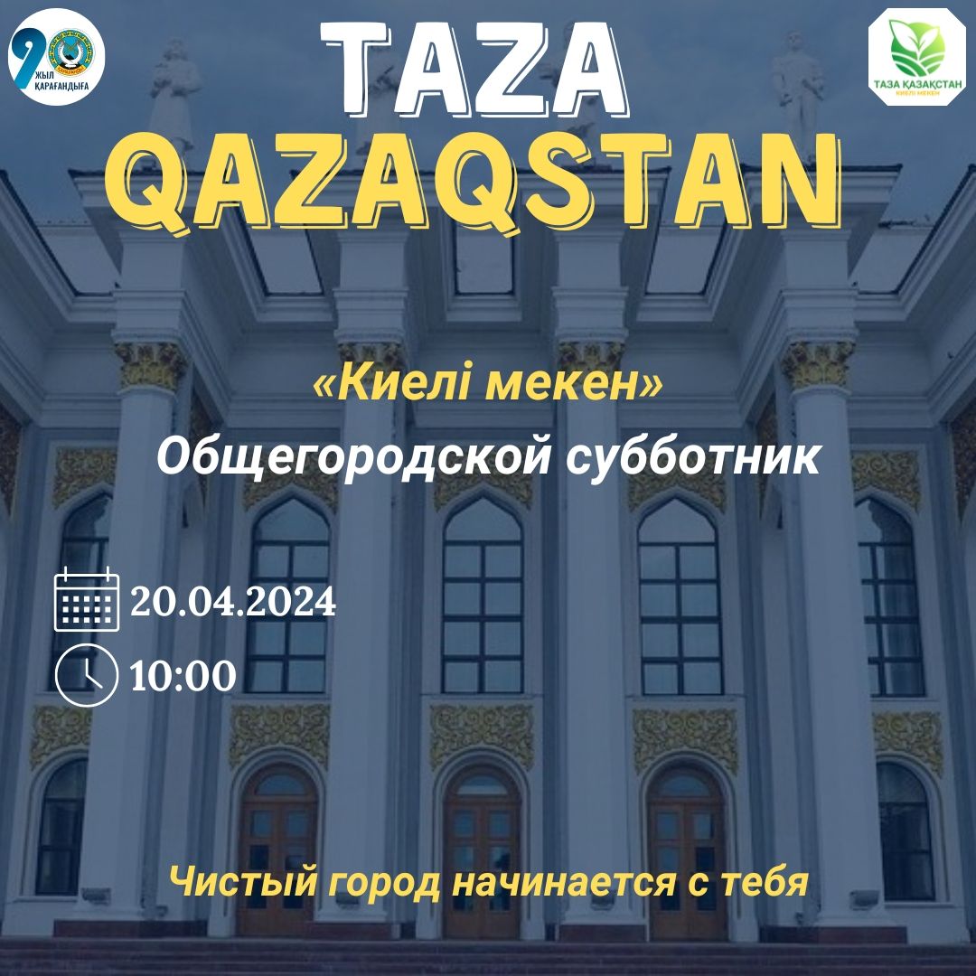 ТАЗА ҚАЗАҚСТАН!   ҚҰРМЕТТІ ҚАРАҒАНДЫЛЫҚТАР, ЖЕРЛЕСТЕР!   20 СӘУІР ЖАЛПЫ ҚАЛАЛЫҚ СЕНБІЛІККЕ ҚАТЫСУҒА ШАҚЫРАМЫЗ!   Тазалығымен ерекшеленген қандайда бір көрініс жанға жылу б…