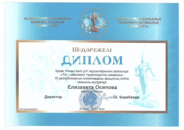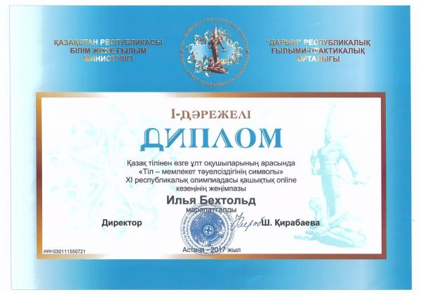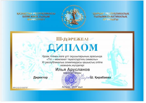 Учащиеся СОШ №32 заняли призовые места в XI республиканской олимпиаде по казахскому языку среди учащихся других национальностей "Язык - символ независимости государства". I место - Бехтол…