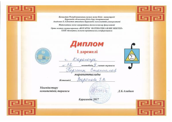 В КарГУ им. Е.А. Букетова на факультете математики и информационных технологий прошла XXIII Региональная научно-практическая конференция "Высшая математика и школа". Ученик 9А класса Перш…