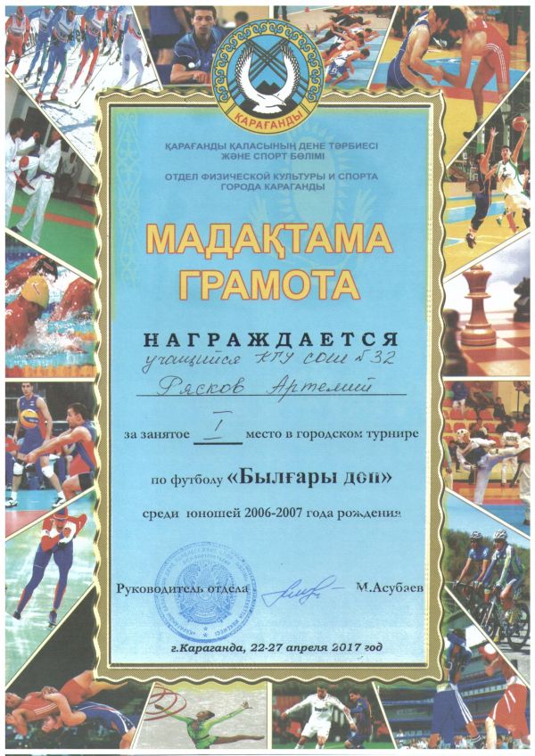 I место в городском турнире по футболу
