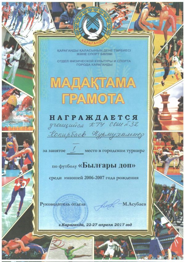 28 апреля на базе СОШ №32 прошел 18-ый городской слет ЮИД. Отряд школы «Бағдаршам» занял I место, был награжден грамотой, кубком и подарками. В программу входило семь конкурсов: «…