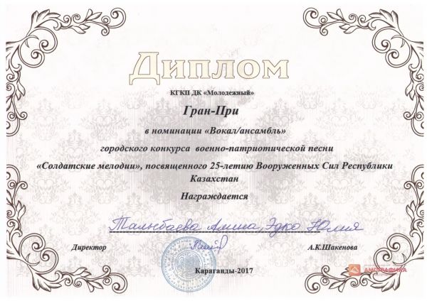 Учащиеся СОШ №32 стали обладателями Гран-При городского конкурса военно-патриотической песни "Солдатские мелодии", посвященного 25-летию Вооруженных Сил Республики Казахстан, в номинации &…