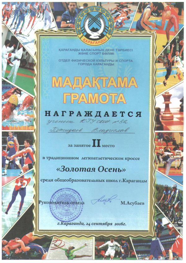 Команда юношей СОШ №32 заняла II место в традиционном легкоатлетическом кроссе «Золотая осень» среди учащихся общеобразовательных школ города.
