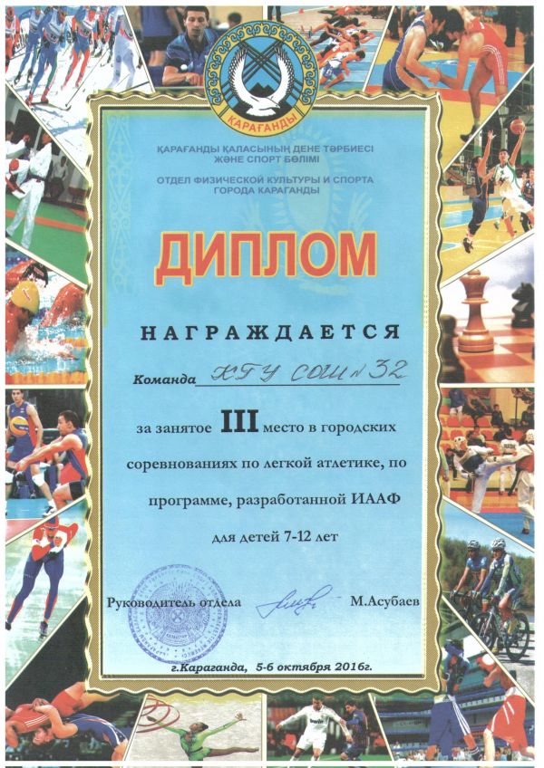 Команда СОШ №32 заняла III место в городских соревнованиях по легкой атлетике, по программе, разработанной ИААФ для детей 7-12 лет.