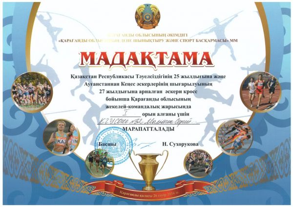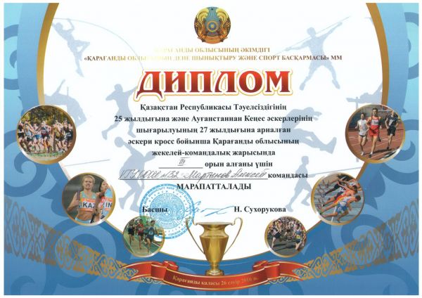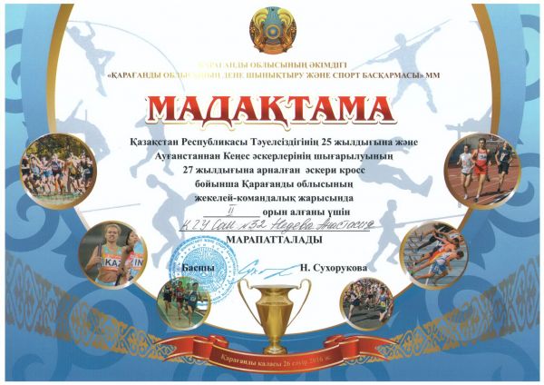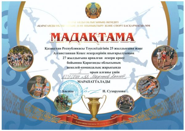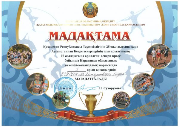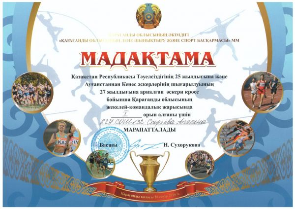 Команда СОШ №32 заняла I место в лично-командном чемпионате Карагандинской области по военизированному кроссу, посвященному 25-летию Независимости Казахстана и 27 годовщине вывода войск из Афганиста…