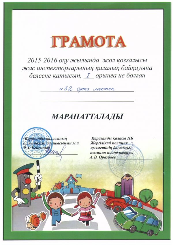 28 апреля прошел 17-ый городской слет ЮИД. Отряд СОШ №32 «Бағдаршам» занял I место, был награжден грамотой и ценными подарками. В программу входило семь конкурсов: «Знатоки ПДД&…