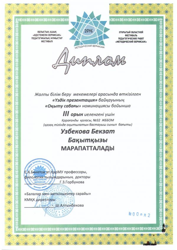 К 71 годовщине Победы в Великой Отечественной войне факультетом журналистики КазНУ им. аль-Фараби был проведен VII Республиканский конкурс сочинений, в котором работа ученика 5 «В» кл…