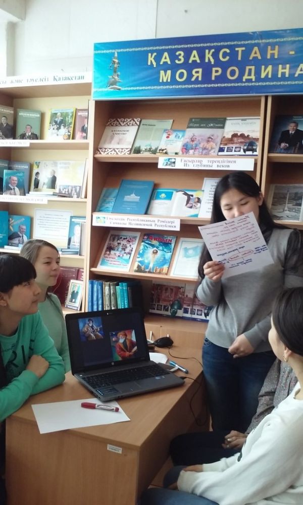 30 наурыз күні 9 «ә» сынып оқушылары кітапханашылармен бірігіп, сыныптан тыс дөңгелек үстел ұйымдастырды. Дөңгелек үстелде қазақ халқының ұлы ақыны Абай Құнанбаевтың өлеңдері мен қара сө…
