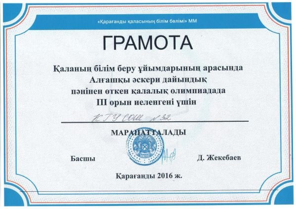 Коммунальное государственное учреждение "Общеобразовательная школа № 32" акимата г.Караганды государственного учреждения "Отдел образования г.Караганды"