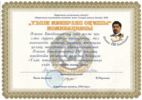 Наурыздың 25-ші жұлдызында «Қарағанды қаласының білім бөлімінің» ұйымдастырылуымен өткен С.Сейфулин атындығы қазақ драма театрында  Ә.Бөкейхановтың 150 жылдығына орай мектеп оқушыла…