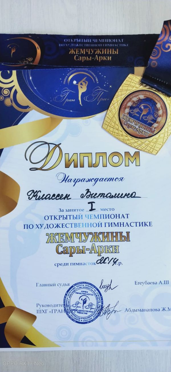 Наша ученица 2 А класса Классен Виталина заняла первое место на открытом чимпионате по художественной гимнатике «Жемчужена Сары-Арки».