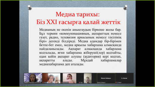 Цифрлық сауаттылық апталығының 1—күні 6 "Ә" сыныбымен «Медиа тарихы, біз 21 ғасырға қалай жеттік?» тақырыбында сынып сағаты өтті. Мақсаты: Әлемдегі жаңа медианы…