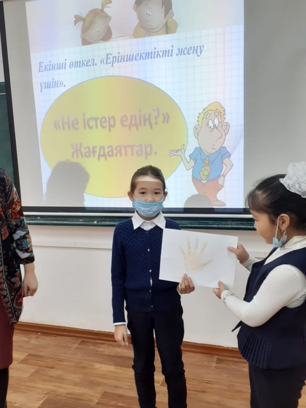 Мектебіміздің 4 ә, е сынып оқушыларымен "Сауатты және дені сау адамның маңызды қасиеттері" атты психологиялық тренинг өткізілді.
