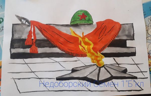 Среди учащихся 1-4 классов, прошла выставка рисунков, посвящённая великому празднику День Победы.