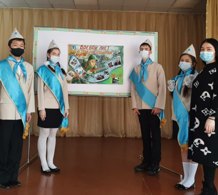 Жас Ұланцы 8А класса Пожидаев Максим,Зимевица Наталья,Талгатов Ильнур, Глотова Валерия, Джумабаева Жасмин(8Әкласс) приняли участие в военно-спортивной игре"Қалқан-2021".З…