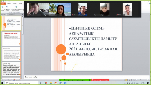 №32 ЖББОМ -де 01.02-06.02.2021ж аралығында «Цифрлық әлем» ақпараттық сауаттылықты дамыту апталығы басталды. Апталықтың ашылуына байланысты «Достық Интернет: Интернет-ғалам» б…