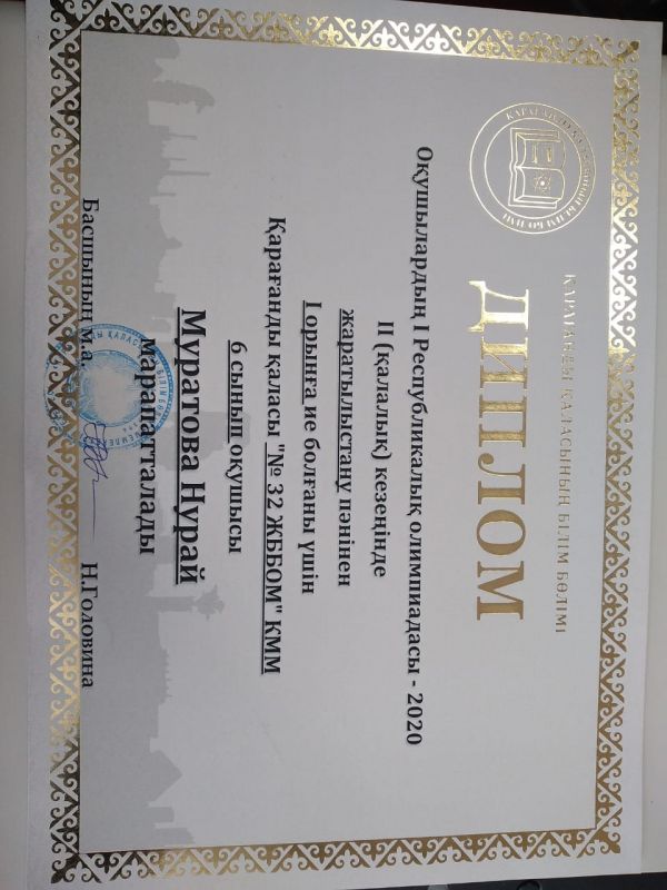 Қарағанды қаласының Білім Бөлімінің ұйымдастыруымен 20.11.2020 жылы оқушылардың 1Республикалық Олимпиадасы-2020 2(қалалық) кезеңінде жаратылыстану пәнінен Қарағанды қаласы "№32 ЖББОМ"…