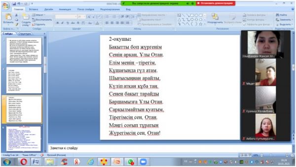 Оқу сауаттылығы аптасы аясында мектебіміздің 7 «Е» сынып оқушыларымен «Мен елімнің ертеңімін» атты тақырыпта сынып сағаты өтті. Сабақтың мақсаты: Туған еліне деген сүйіспенші…