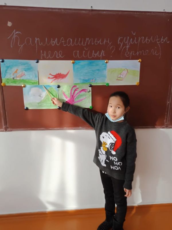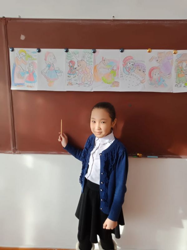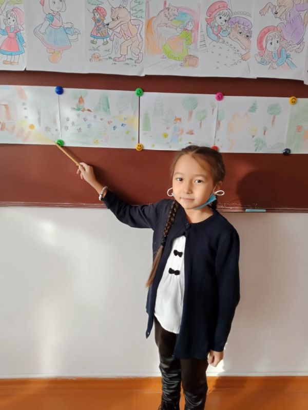 4"Е" сынып оқушылары "Менің сүйікті ертегім" атты сурет көрмесін ұйымдастырды. Әр оқушы өз салған суретін қорғады.